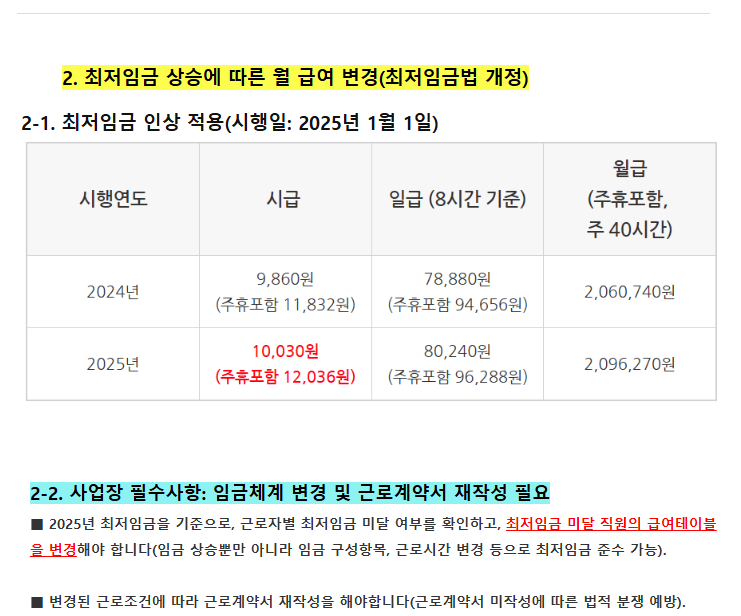 2025년 달라지는 노동관계법령 안내